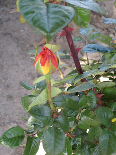 After his initial success, he didn’t seem to mind finding other flowers, too – but only the ones he found especially interesting, like flowers planted around trees or red flowers (his favorite color). There was also this out-of-place bloom coming up out of a bush: