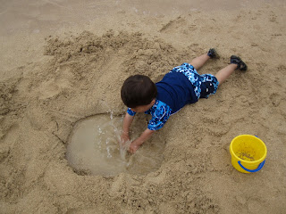 The little guy also took much pleasure in heaping gobs of wet sand back out into the water.