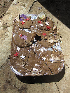 @SquiggleMum: The fairies loved their yummy cakes!<br /><br />@Mama Ruck: Loved your post — looks like we have some serious mud lovers on our hands!<br /><br />@Lisa: Thanks for the inspiration!<br /><br />@Angela: I'm thrilled that the big explorer finally let himself enjoy getting his hands dirty. This activity was a blast for him!