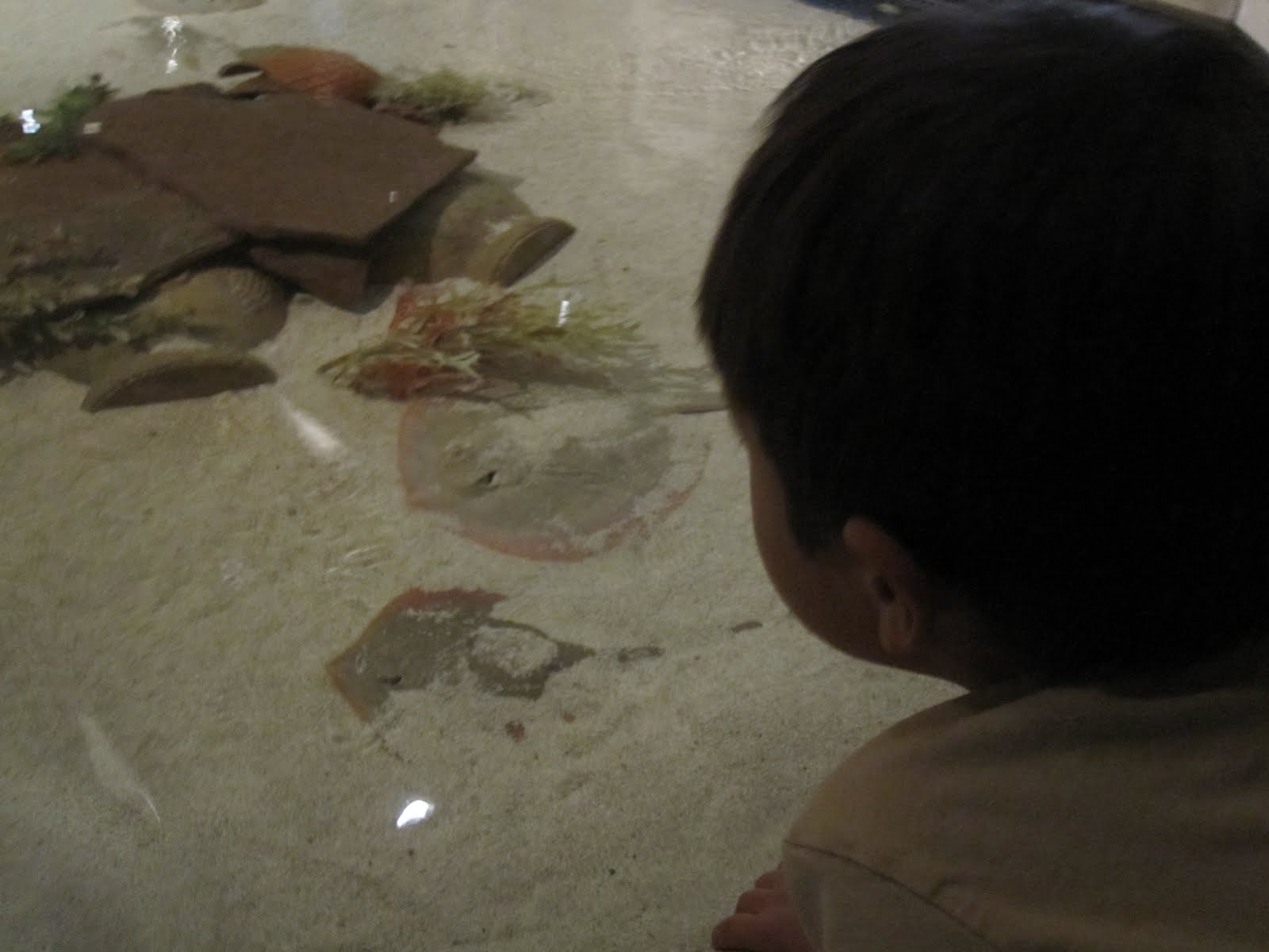The fun started before we ever reached the Aquarium. There’s a cool screen that “follows” your movements as you walk by. The big explorer was enthralled and ran this way and that at least 10 times before we had to drag him away.