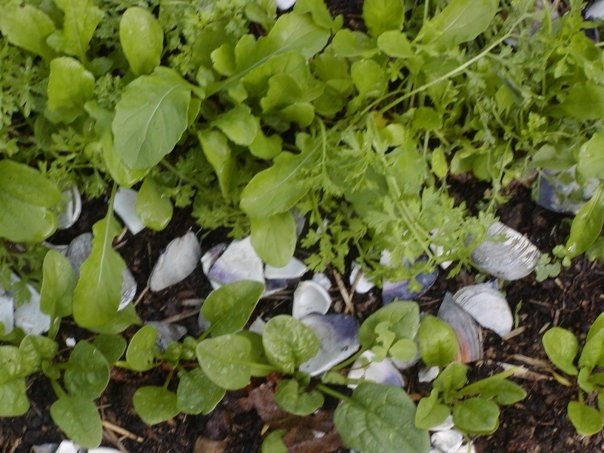 Spinach & mesclen mix mulched with oyster shells (Summer 2008)
