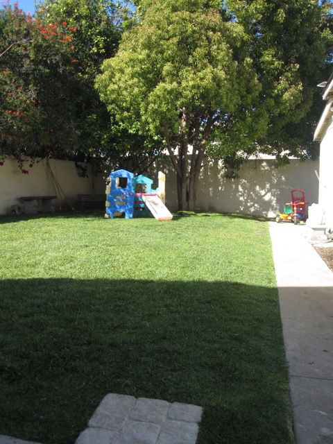 Your yard's not so bad…it has a tree, and a lawn to run on! Mine's half the size, all deck and one small hedge.<br /><br />I'm embracing plastic while my boy is tiny — he loves his "little house", and his sand table, and his slide/ship/castle. We will build a fort when he's old enough to help. My dad did that for us when I was about 7 — the building is as great a