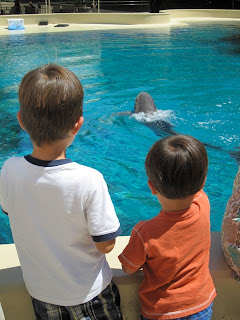 You might remember from our visit to SeaWorld last summer that the big explorer is a huge fan of dolphins. That’s one reason why we decided to check out the Mirage’s Secret Garden and Dolphin Habitat.
