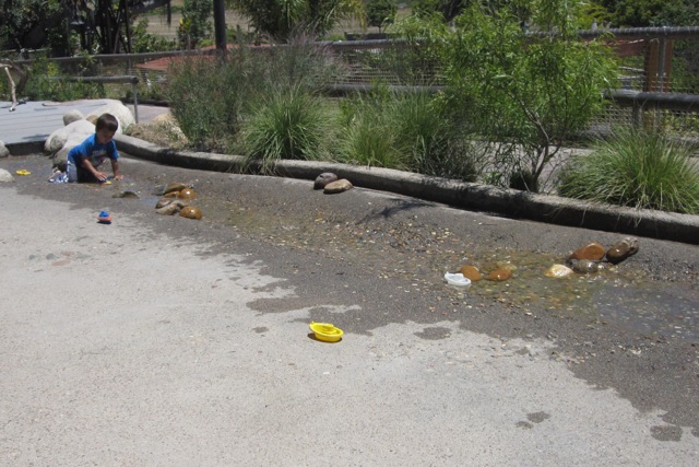 After watching trains go by more times than I can count, pumping water at the pump station and plenty of lizard chasing, we were able to lure the kids away with promises of an even bigger children’s area at the other end of the Garden. Said garden, the Hamilton Children’s Garden, is one of the most fantastic natural play areas I have yet seen.