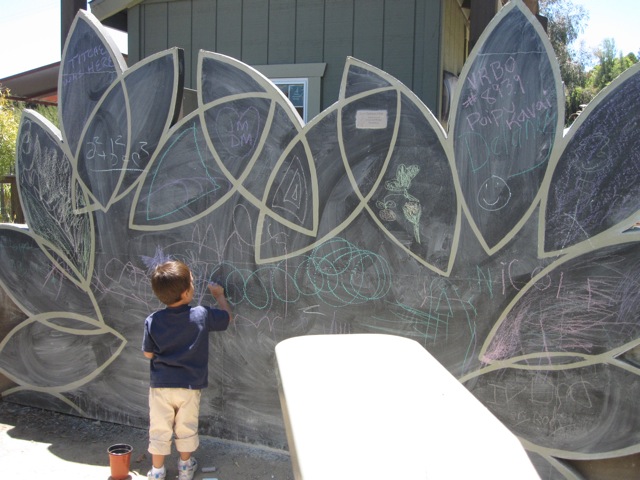 Here kids can climb Toni’s Tree House in a jungle canopy, hop through an elephant foot tree forest, see live quail (though we didn’t during our visit), play in a mountain stream, make music, draw on a giant chalk wall and more.