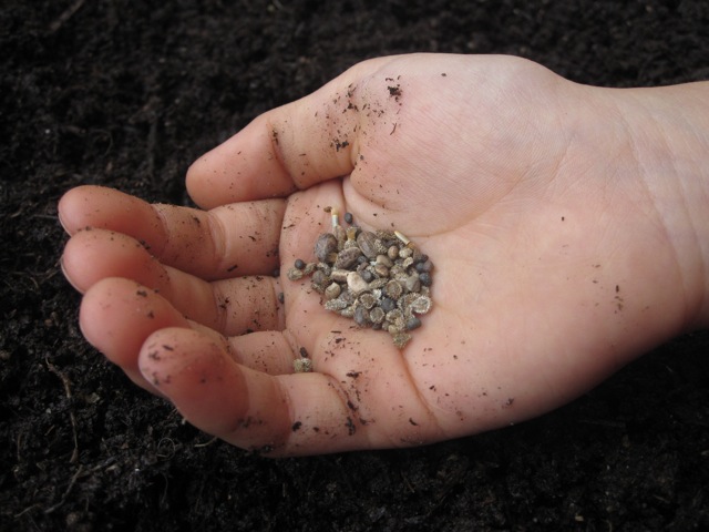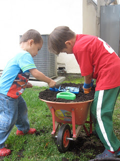 The kids loved mixing up the new soil with the old.